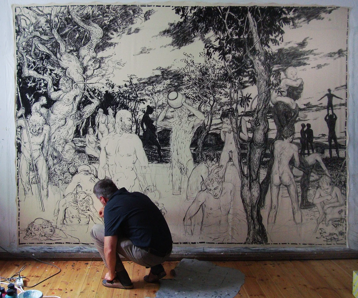 “Fountain of Youth (in Progress),” Kai Teichert 2015, charcoal on canvas