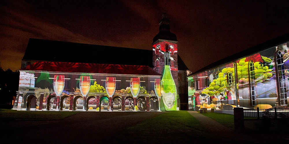 The project features rapidly morphing, 3D animation projected onto the regal façade of Dom Pérignon's 7th century womb, the Abbey d'Hautvillers, exploring a musical and visual analogy of the brand's DNA and its evolution over the centuries. It celebrates the brand's heritage, and conceptualises how age-old practices, like dom Pierre Pérignon's 17th century champagne production, can blur the boundaries between past, present and future.